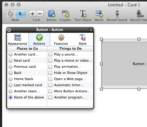 Then one is presented with a series of pre-determined actions the button can perform, which is also cool until you realise that that's as far as it goes: no apparent access to scripting at all.