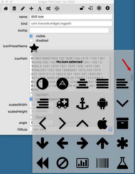 I just installed LC 9 Community on Windows 10, on a Dell Inspiron 13 inch touchpad i5, moving from the commercial version 5.6 on MacOSX Sierra (yes, it runs just fine). The icon dropdown on Windows seems to be different. It's a translucent list that I can't scroll through or filter by name. Page Up/down, enter, tab, return all are ineffective, as are mouse and touchscreen in both tablet and notebook mode. I don't see any others reporting this problem so it must be just me. Any ideas?