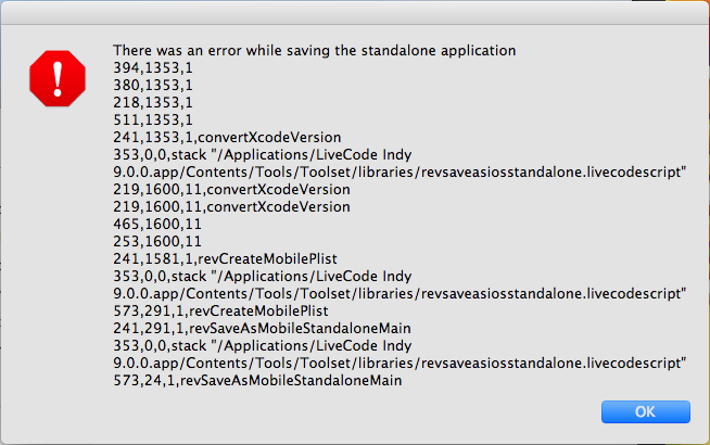 Re: There was an error saving the standalone application: (convertxcodeversion)(createplist)