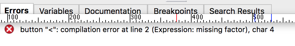 Error says: "button "<": compilation error at line 2 (Expression: missing factor), char 4.