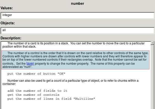 Thanks for the clarification. I do name my fields (probably poorly but consistently :D ). I can't say I like the way the number is used for the lessons without an explanation of it. I wonder if the numbers correspond to the object layer list for the stack. Oh well... LiveCode is SO different from Python. But at least I now have an easy crossplatform app environment to work with :D