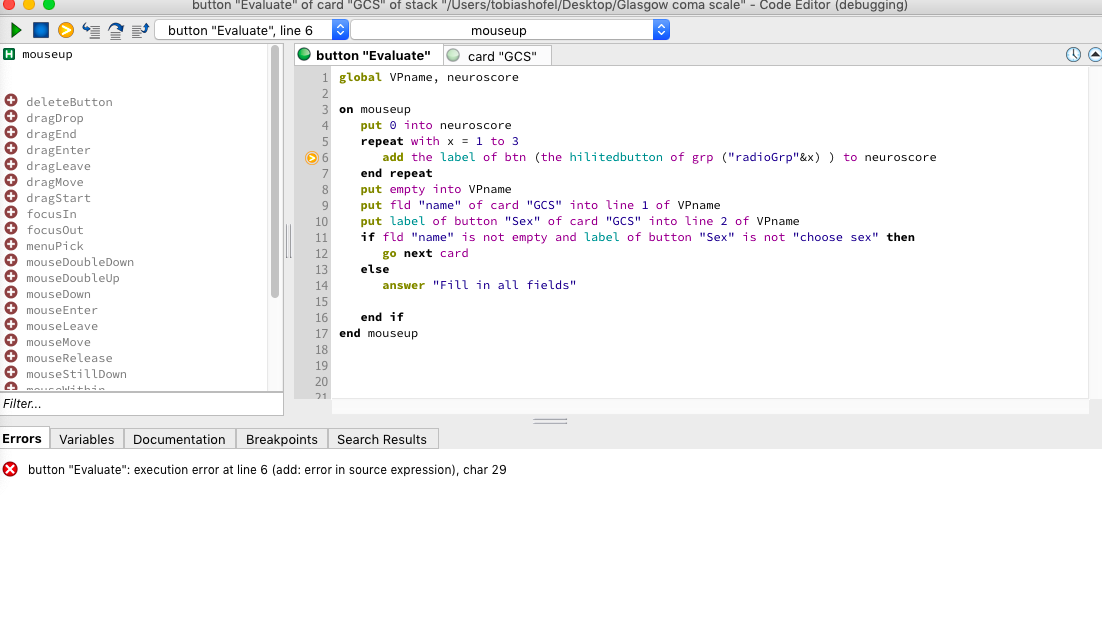 I am referring to Tobi's screenshot of the script editor for btn "Evaluate".