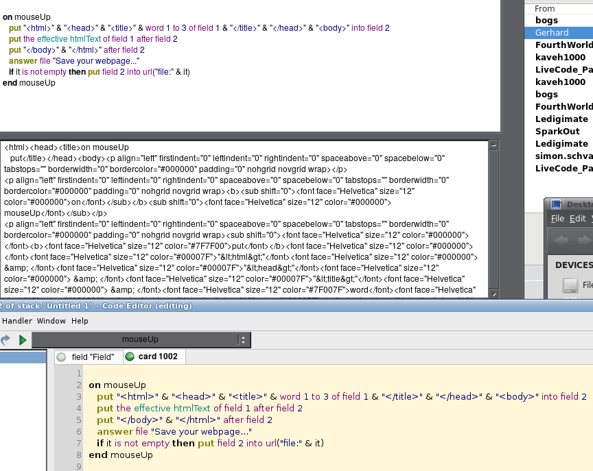 Now, lets say you have your text editor written and your happy with it, you now have to convert the output to html, if we are talking about a simple editor. This is rediculously easy in Lc, after reading your post it took me maybe half an hour to jigger this together -