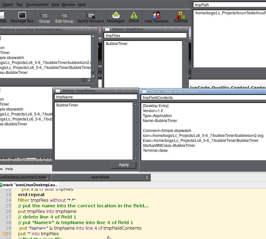 put "Exec=" & tmpPath & tmpName into line 7 of field 1