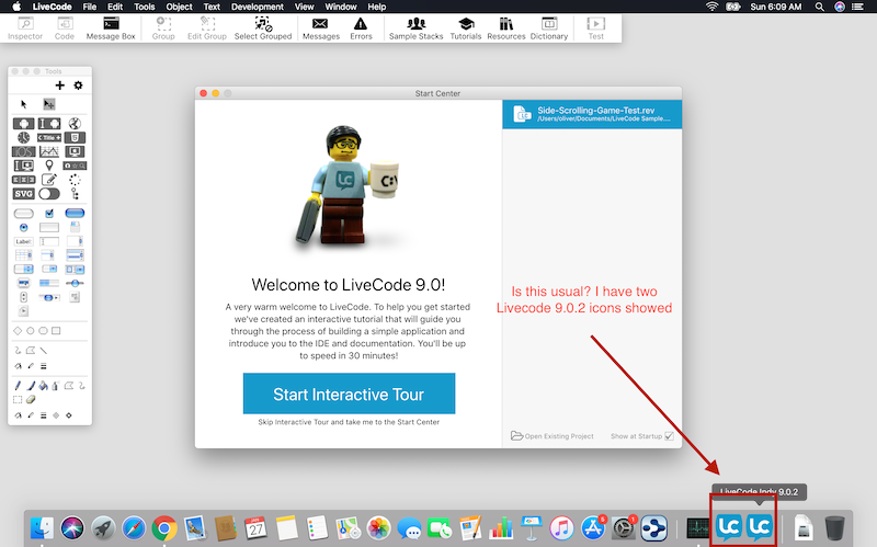 Running LiveCode 9.0.2 in Mojave and see two icons showing on the task bar at the bottom. Is this normal?