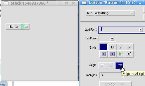 I believe the margins are working as they should be, as far as what they do, but I think they are based on 2 different points of this particular button, which is why "right" align pushes the text to the left, if you see what I mean. The pictures in the first post are from 8.1.2, the last version I can get to run (somewhat) reliably on this system.