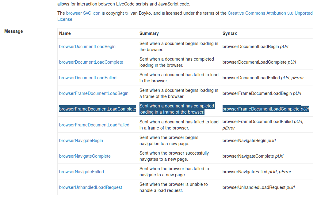 In the case of your question, I suspect the answer is 2 above the highlighted one, "browserDocumentLoadComplete", however I've never actually used any of the newer stuff, so I'll leave you to test that on your own :D