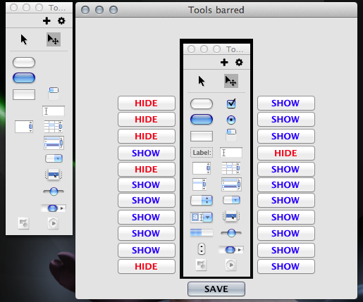 That is pretty slick, now all you need to do is add the 'move each of the shown buttons into a grid format' command and resize the palette to match the size of the displayed grid :D