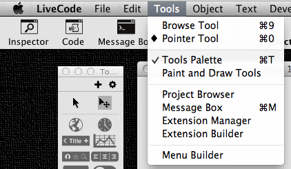 Livecode 9.5 is using diamond on MacOS X (in my case 12.6) in Tools menu to indicate the "Browse Tool" or "Pointer Tool"