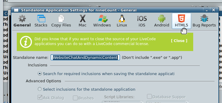 I am sorry, when I referred to 'html5' , I was talking about the 'html5 builder' in the Lc standalone settings panel, i.e. turning out an html5 standalone.