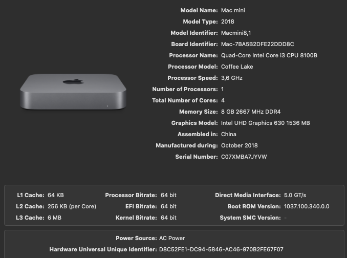 On Macs, Get (PersistentID) returns the MD5 hash value of the Hardware UUID as seen from "About this Mac -> More Info -> System Report -> Hardware"