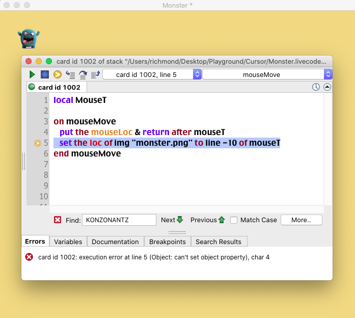 set the loc of img "monster.png" to line (Lyne -10) of mouseT