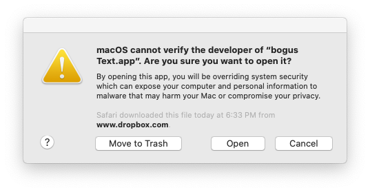 I don’t think the Curl trick is going to work anymore. Shortly after installing Catalina, I moved an app from one of my machines to another over my LAN and got the same message and had to do the right click open as if it had come from the big bad internet. I believe Big Sur is going to be more so, since the beta iOS and iPadOS are checking who is peaking at the clipboard etc.