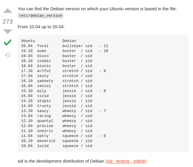 Well, here is a list of comparable versions of Ubuntu v. Debian....