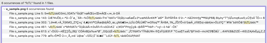 If one opens an APNG image using a text editor (I used BBEdit) the fcTL starts of each frame show up clearly.