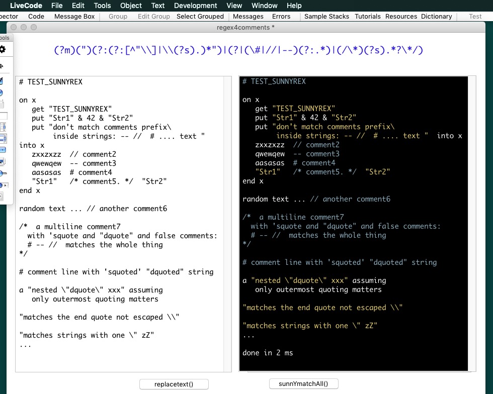 You can of course do all of this with “normal” LC script but that rapidly produces a more complex/lengthy script, where regex would be a lot simpler... in the example in the link above our delim1 would be “//“, “#”, “--“ or “/*”, and your delim2 would be return or “*/“ respectively.