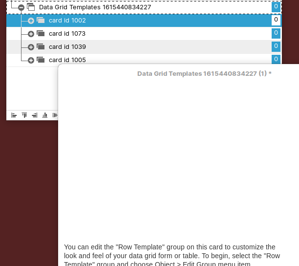 The cards in the datagrid template hold the template objects that are used to make the live datagrid. So don't delete them.