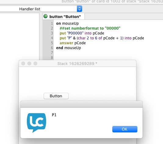 On a new stack with a button and a field, with "P12345" in the field and this in the button script: