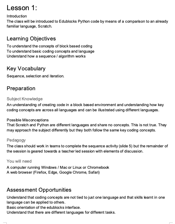 "A completely free curriculum with everything you need to deliver six lessons using EduBlocks