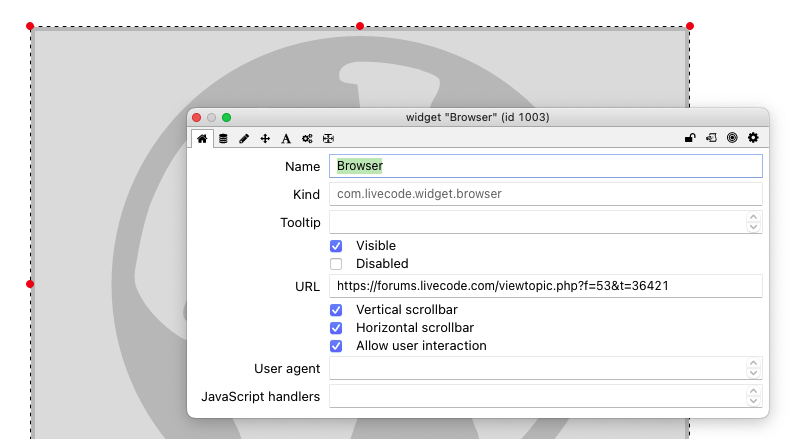In this case the property would apply to both the browser widget and the mobileControlCreate syntax, so it would require an engine change to fix it.This IS the main reason I am not keen on Widgets and would far rather, when possible,