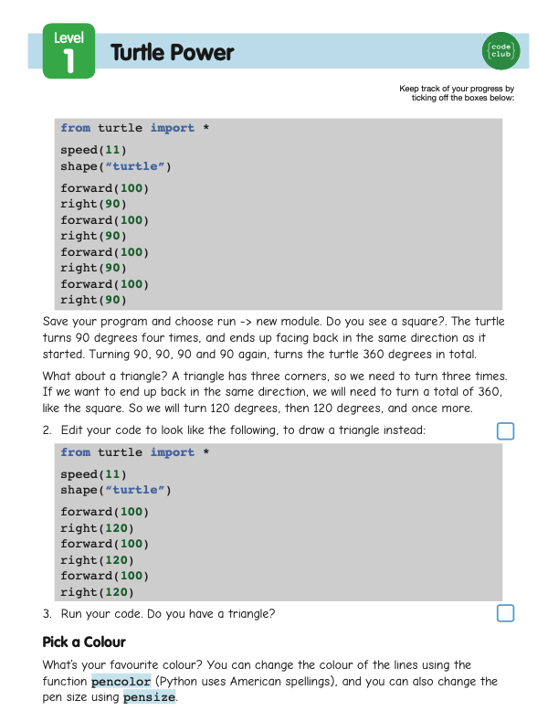 In some respects it might be better to leave children to enter Turtle Graphics commands into a field: