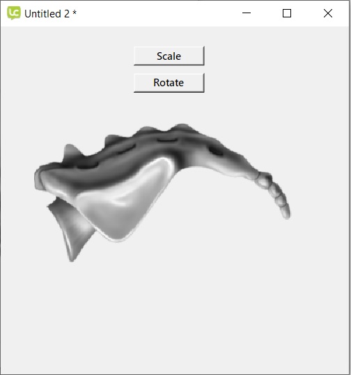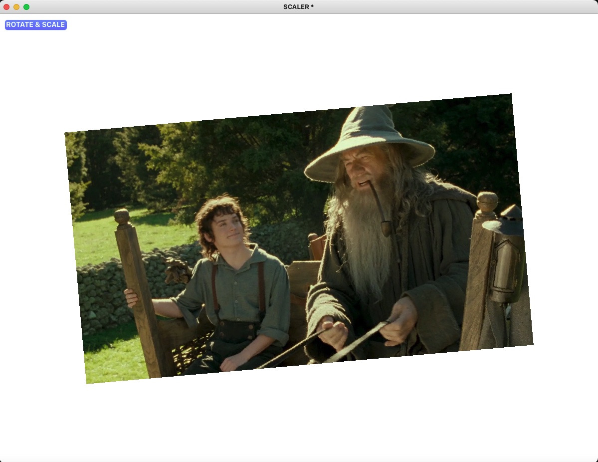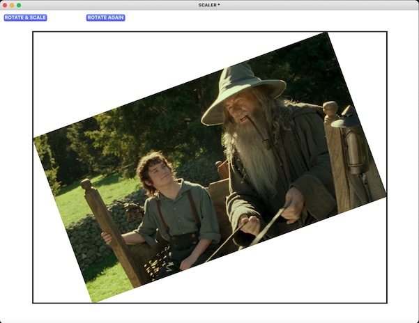 Below I have provided the code for 2 buttons: SCALE and ROTATE. These will effectively a) scale a rotated image and; b) rotate a scaled image.