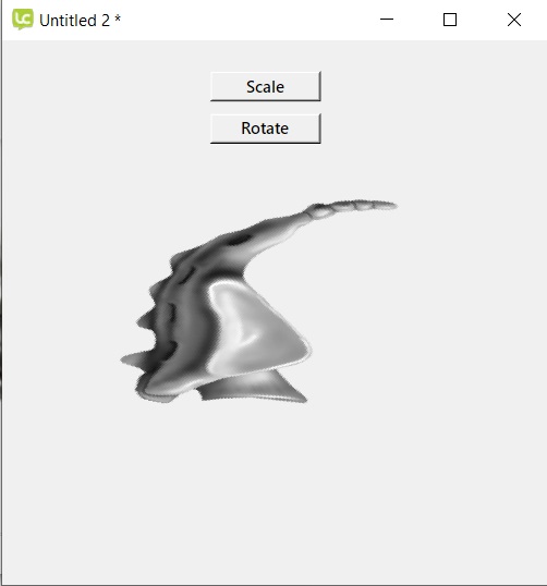 Below I have provided the code for 2 buttons: SCALE and ROTATE. These will effectively a) scale a rotated image and; b) rotate a scaled image.