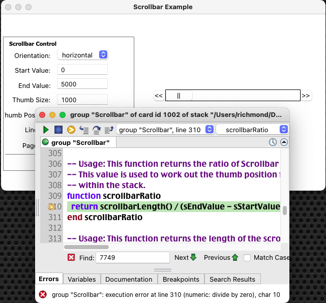 2. It threw a "bluey" as soon as I tried to move the scroll tab.