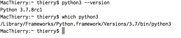 For informations: "which -a python python2 python2.7 python3 python3.6" typed in the Mac Console returns: