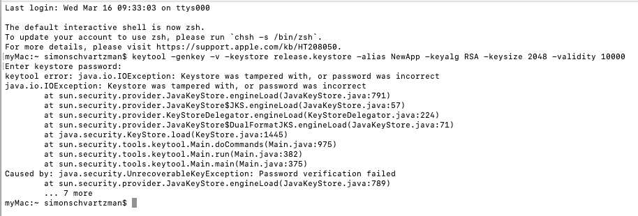 Since I haven't been able to overcome the issue I decided to create a new APP (it will be OK for me to do so) but now I'm facing a new problem, when I run the command line to generate the key I'm getting the following error