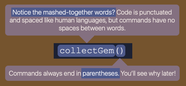 and saw 'mashed-together words' and then 'Code is punctuated and spaced like human language, but