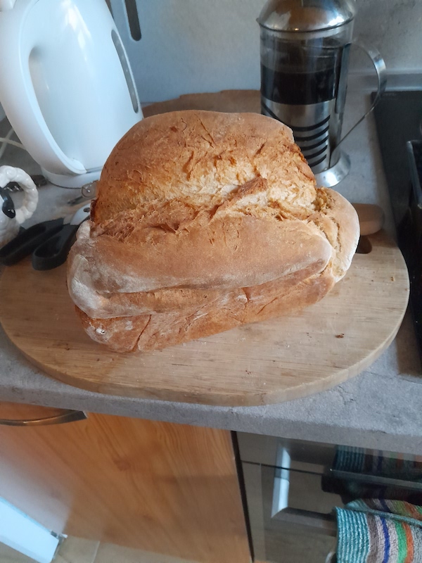 However, I made a 2 pound loaf of bread, dug a post hole, jammed a metal pole with medium stones, mixed 3 loads of cement, filled that hole, topped yesterday's hole, topped that hole after 2 hours, and drank a glass of dark beer.