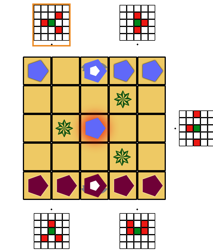 is that on selecting a card and a piece the possible moves that that piece can make are indicated: