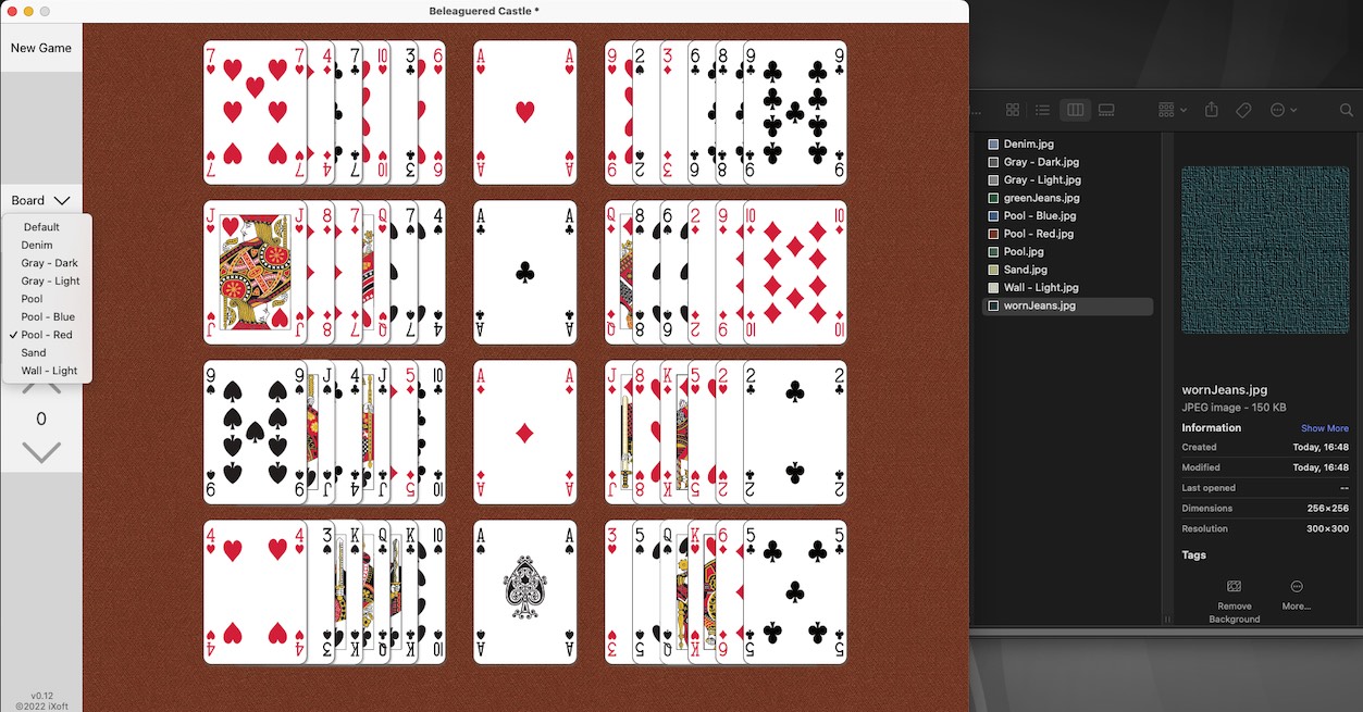 I did however encounter some resizing issues... when one of the side-stacks of card became very large, the scale of everything jumped to a smaller size even though it didn't really need to. I tried resizing the board and then found the cards didn't overlay the wells properly and then the game wouldn't work. I quit the game hoping that restart would fix it, but was faced with this: