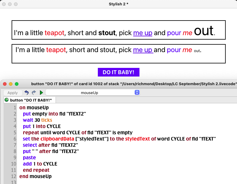 and setting text to "bold" like this is reported by LiveCode as "mixed" (which is badly inconsistent).
