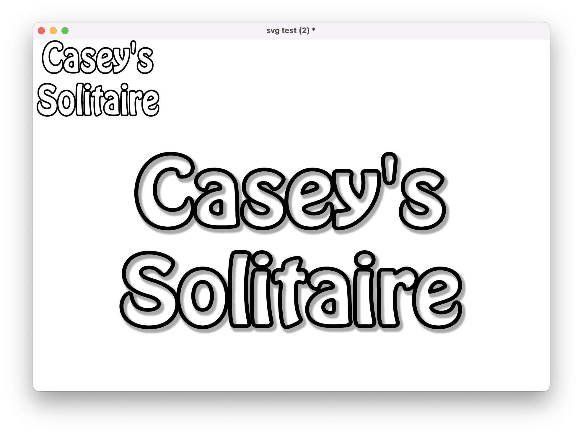 The image is a title for my card game Casey's Solitaire which I'm using as a test stack for web deployment. The PNG doesn't display on a web build so I thought maybe an SVG would. If anyone wants to see if you can get it to display in LC (not necessarily on web, just in the IDE) I'll enclose the image here. Note that not only the background is transparent, but also the white insides of the letters.