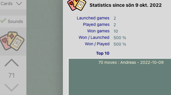 So something goes wrong already at this stage. I've noticed though that it's not always a multiple of 8! On another Mac I have 6 won games and the stats say 50 won games (should be 48 if it were consequently a multiple of 8 ). So the mystery deepens... :?