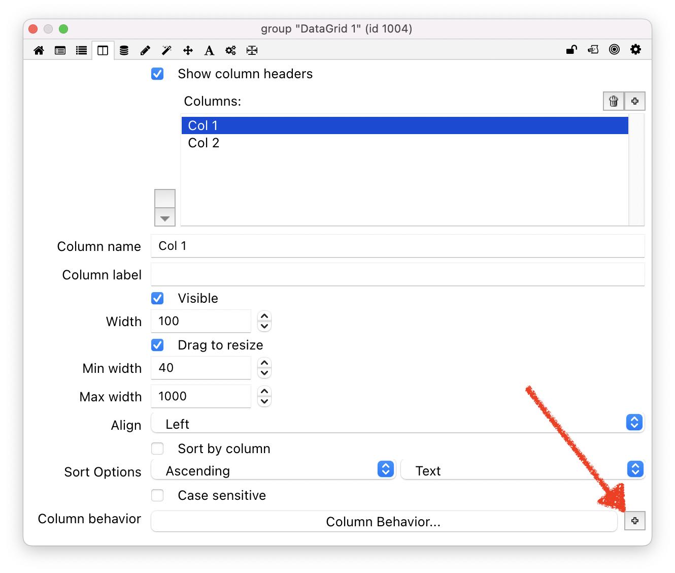 Click "+" to create a Column behavior.