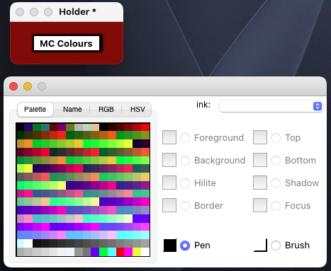 I have just "stolen" the colour chooser stack from MetaCard (!!!) and made it a substack of a stack called 'Holder',