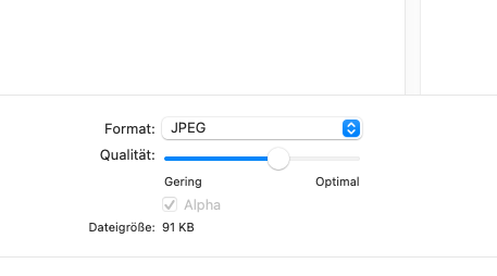 Then I selected JPEG as format and dragged the "Quality" slider until it showed ca. 220 KB as target filesize.