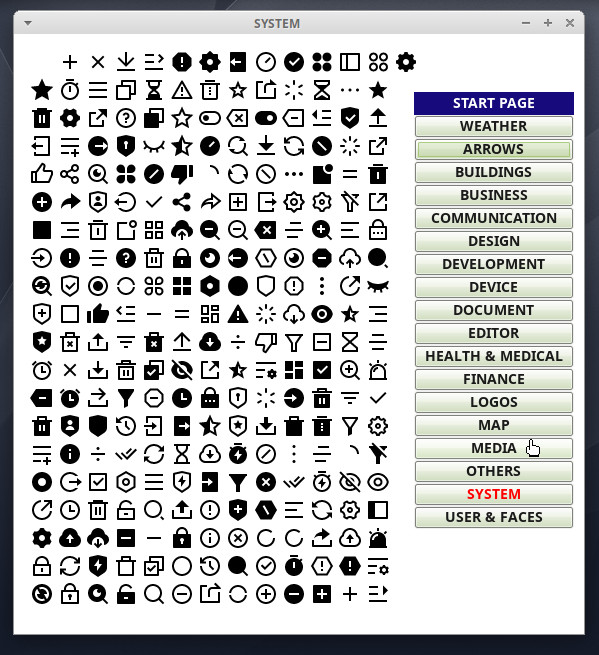 Click on an icon and a fully scaleable SVG vector image will 'magically' appear on your topStack: