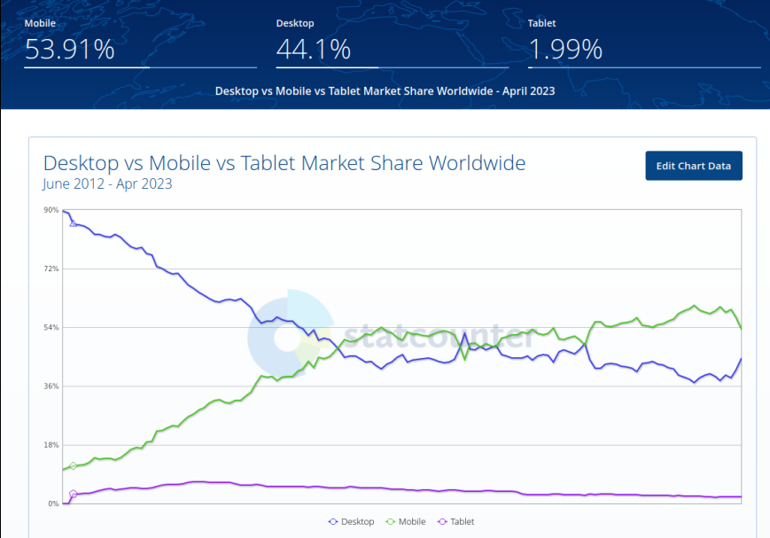 To see usage patterns with form factors, Internet usage is practical metric. And sure enough, as phones went from nonexistent to selling like hotcakes, usage had an upward slope.