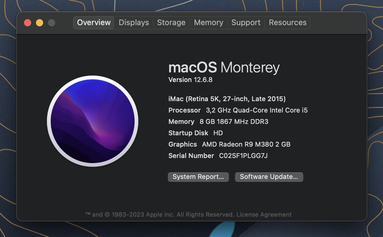 The machine came with MacOS 10.13 "High Sierra", but I am bumping it up to MacOS 12 "Monterey.