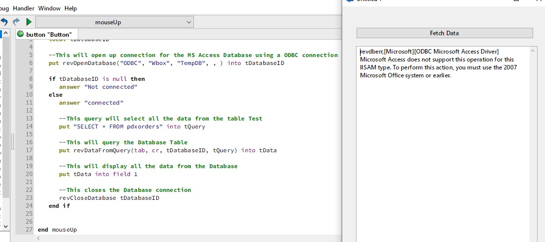 put revOpenDatabase("ODBC", "Wbox", "TempDB", , ) into tDatabaseID