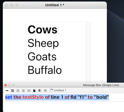 3- In the field inspector click on the "Bold" button. (The "bold" button will toggle, but will not change the textStyle).