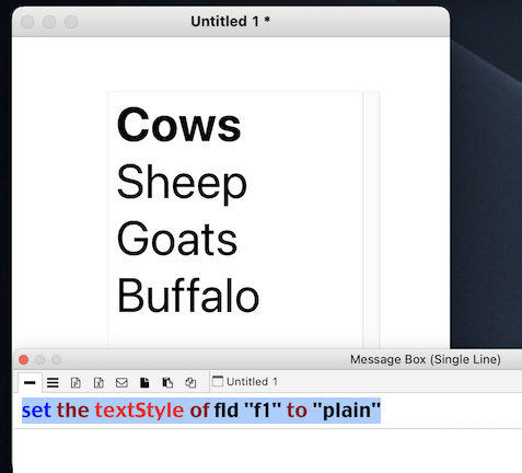 All of a sudden if I try, in the inspector, to set the textStyle of a field that is already bold to, say, plain, the box blinks at me for half a second and then reverts to bold.