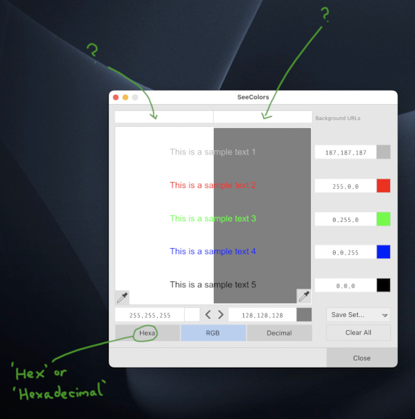 - Ability to choose colors for 2 backgrounds and 4 text samples