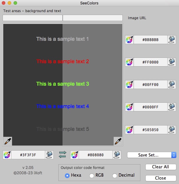 SeeColors is a application to preview RVB, HTML or decimal color values.