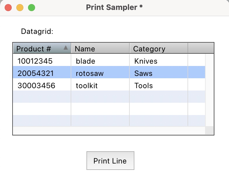 how to print a line (row) of a dg table