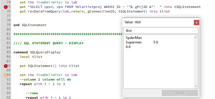in order for my code to make sense, please see this explanation first. I have been collecting tips and tricks for LiveCode either by arriving at solutions myself or copying other's. I regret I have no recollection where I borrowed this from and slightly edited (if you are the author please let me know), but it explains how to retrieve SQL data both ways (with a simple TSV variable